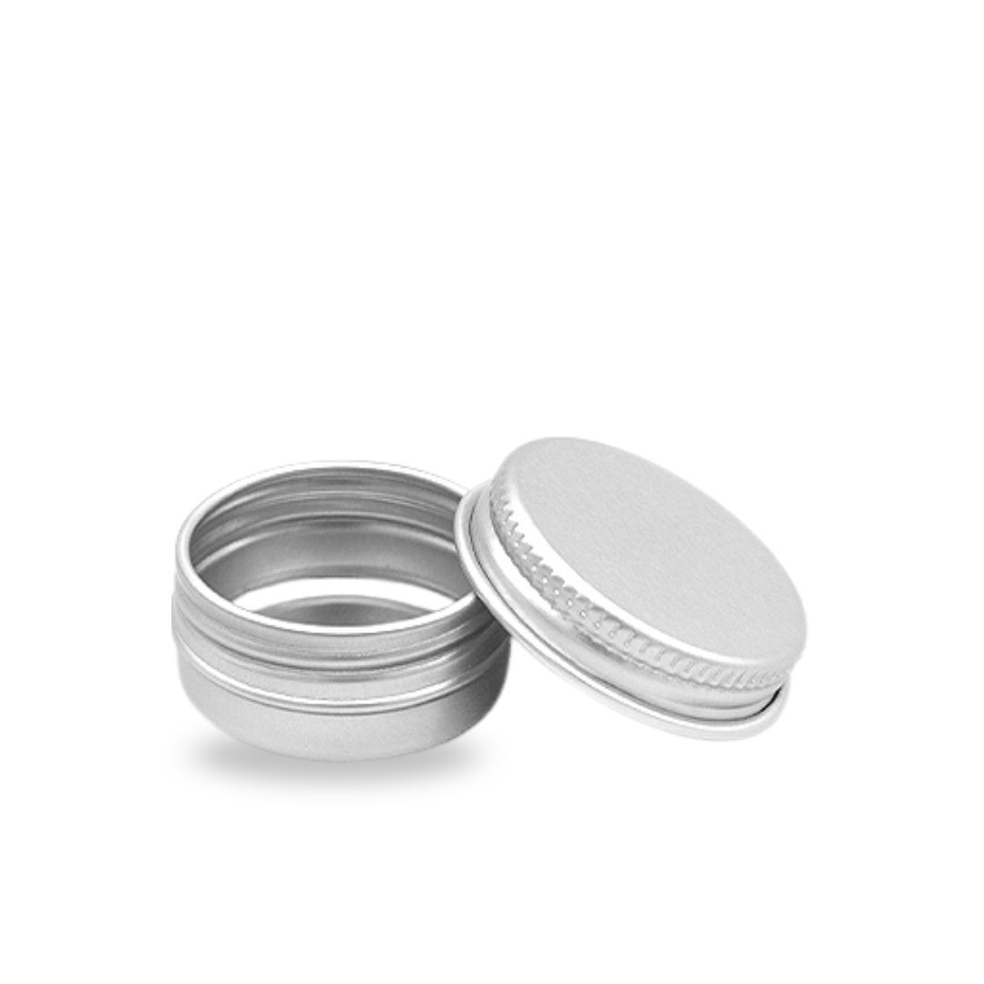 A compact, endlessly useful tin with a clean, minimalist feel. This 10ml aluminium jar is lightweight yet durable—ideal for housing lip balms, botanical salves, solid perfumes, or sample-sized creams. The smooth screw-top lid comes lined with EPE wadding to keep your formulas sealed and secure, even on the go.