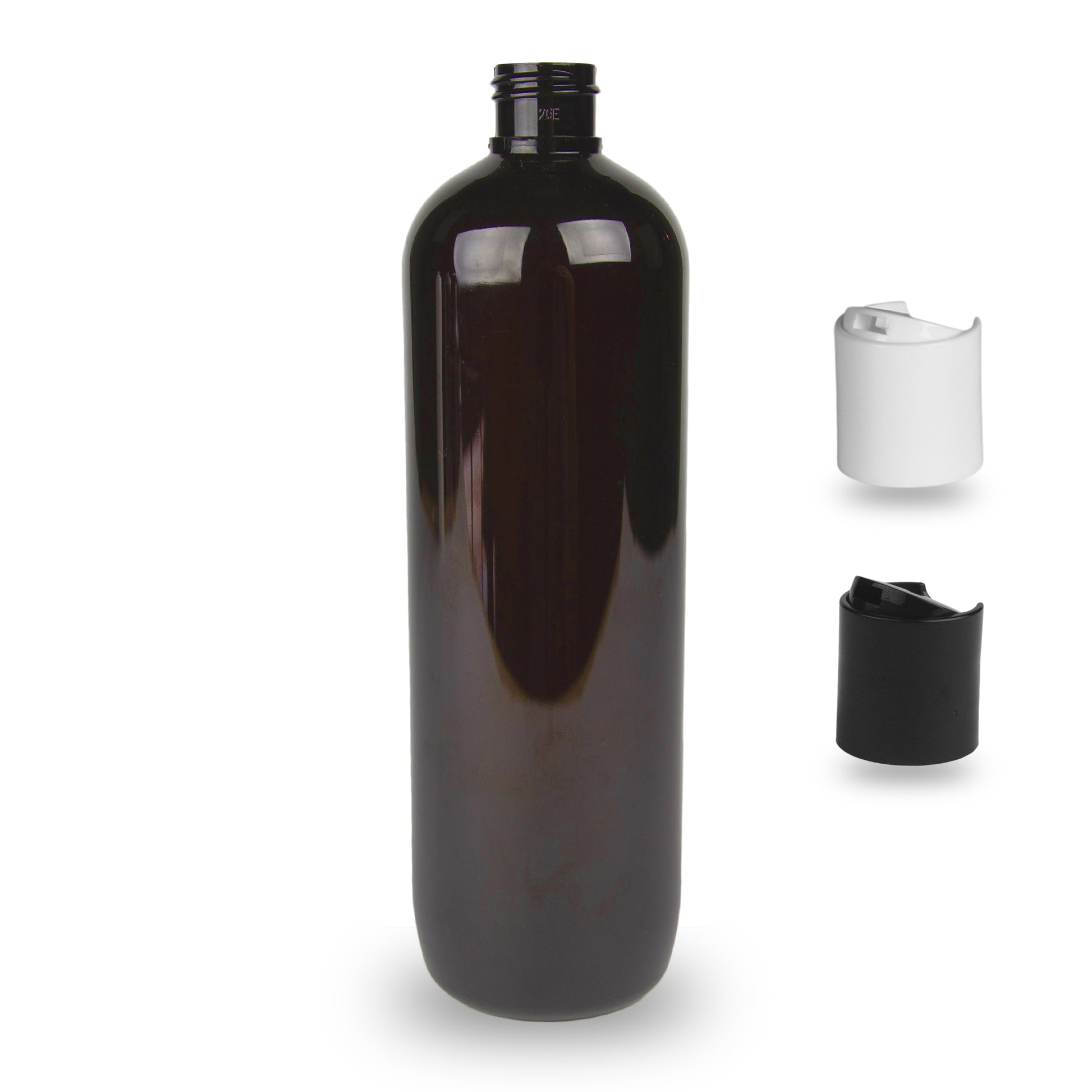 Amber Plastic Bottle PET 'Tall Boston' - (Disc Top) - 500ml - 24mm (24/410)